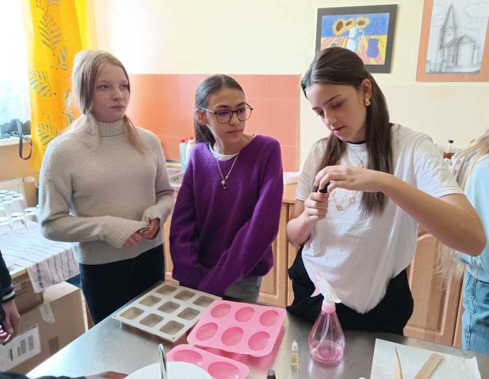 La matinée a débuté avec l'observation de cours de mathématiques, de musique, de slovaque et d'anglais puis les élèves ont participé à un quiz en duo avec leur correspond et ont ensuite fabriqué un baume à lèvres ainsi qu'un savon.